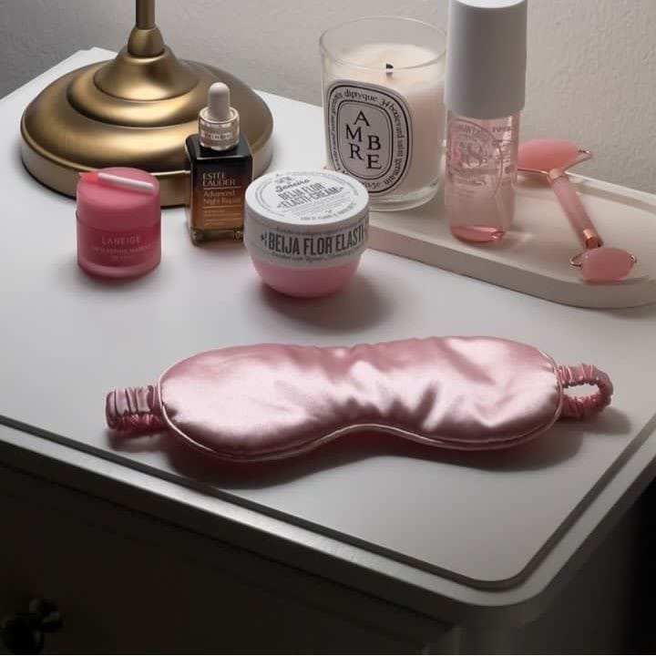 قناع نوم فاخر ثنائي الجوانب مصنوع من حرير صناعي ناعم يعطي إحساس بارد مريح على عيونك. تصميمه ممتاز عشان يساعدك على الاسترخاء وتقليل التعب سواء وقت النوم، او قيلولة الكنبه، أو حتى في السفر.