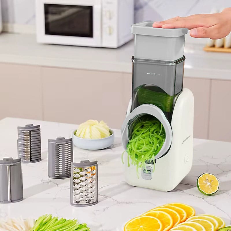 مع جهاز تقطيع الخضار الذكي بـ 6 خيارات تقطيع مختلفة، راح تصير ملكة المطبخ بدون مجهود! انسى الدموع عند تقطيع البصل، وودعي جروح السكاكين، واستمتعي بتحضير أسرع وأسهل لوجباتك المفضلة.