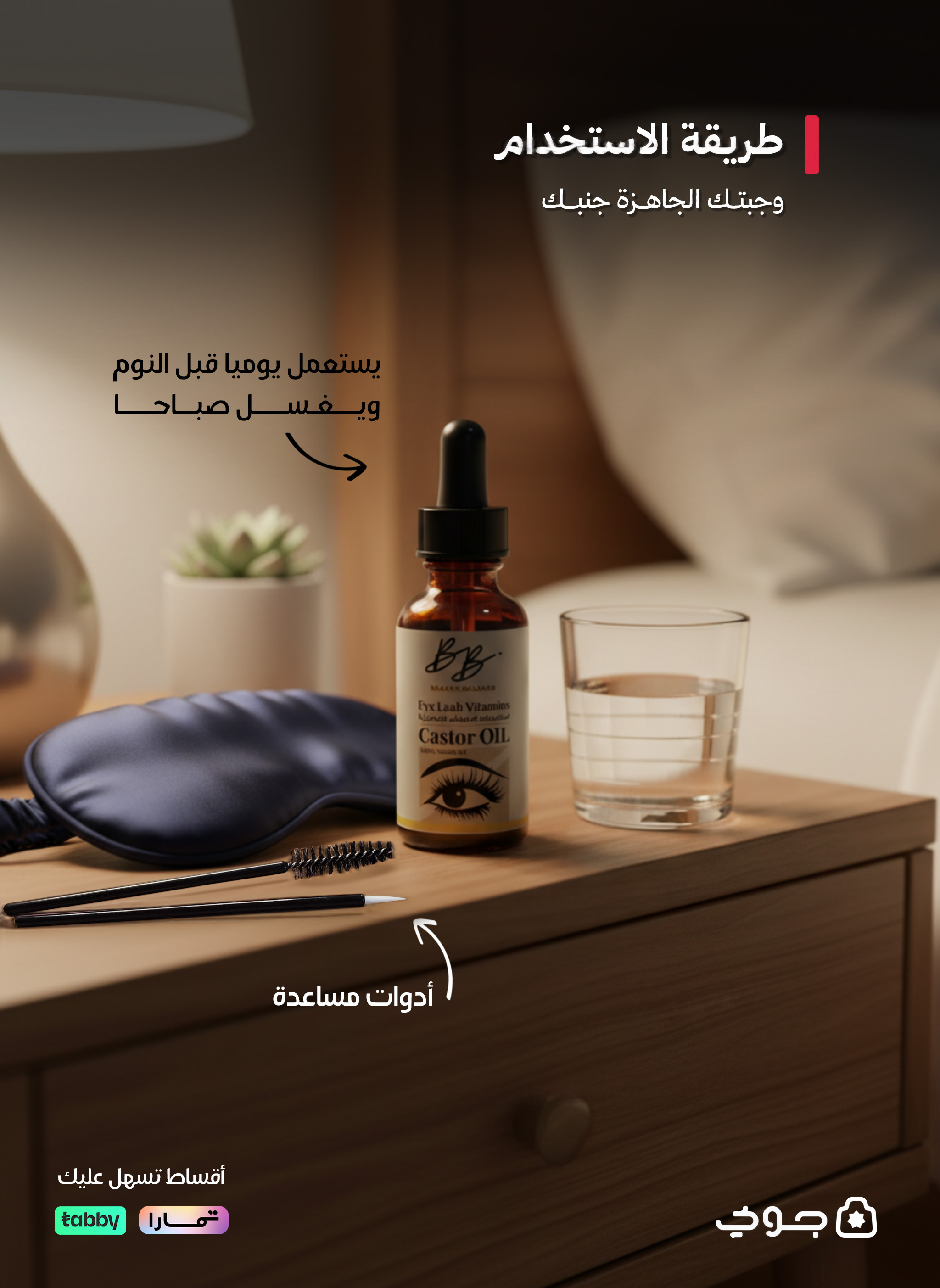 - مكونات فعّالة: زيت الخروع (Ricinus communis) مع الفيتامينات المغذية.